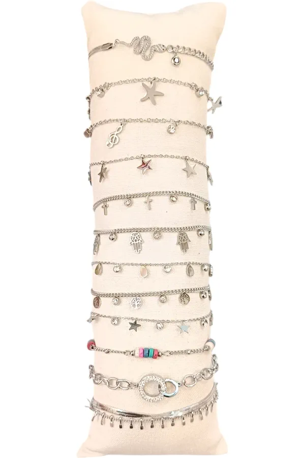 Bracelet en lot avec présentoire Argent