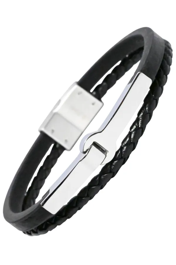 Bracelet homme cuir Argent 56302F