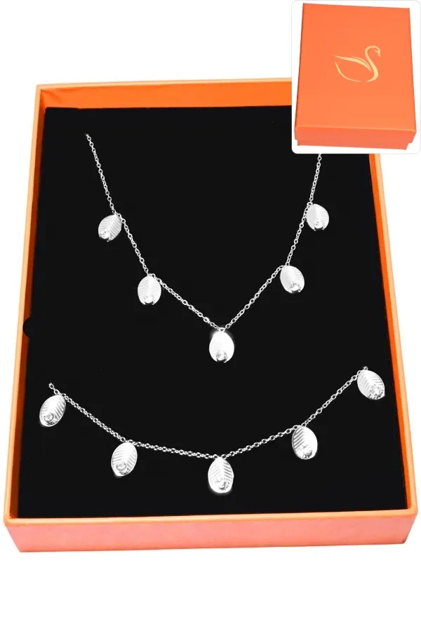 Coffret cadeaux parure bijoux feuille Argent