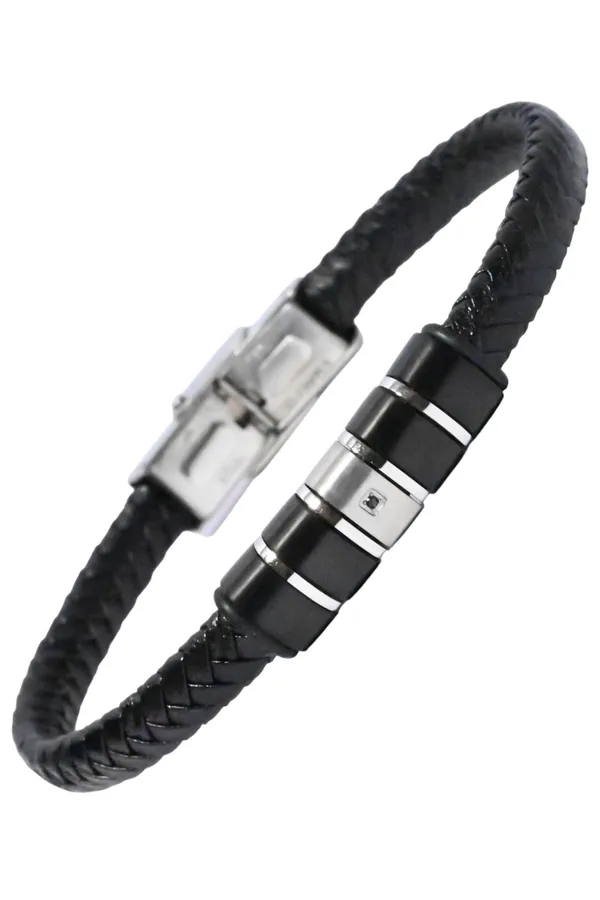 Bracelet homme cuir Argent