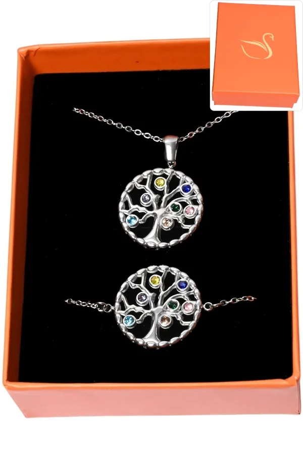 Coffret arbre de la vie cadeaux orange parure bijoux Argent